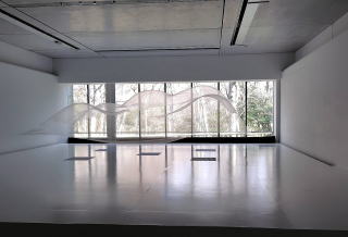 入口の布と空気の流れを用いたインスタレーション
