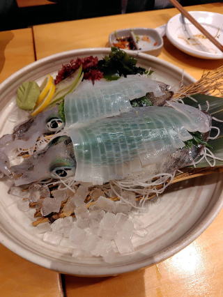 前夜のヤリイカとは異なり、今夜のアオリイカはやや柔らかめ