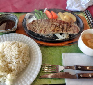 食事券があったので奮発しステーキで充電、美味かった(笑)