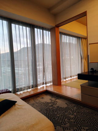 ここではゆったりした部屋(洋室+和室)と眺望、充実した温泉とプールを満喫しました