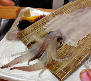 前夜のヤリイカとは異なり、今夜のアオリイカはやや柔らかめ