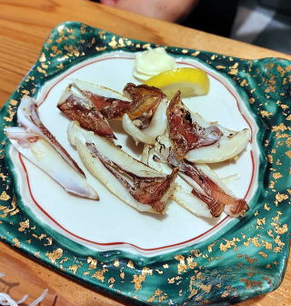 大きなヤリイカは刺身、天婦羅、塩焼きとすべて美味かった
